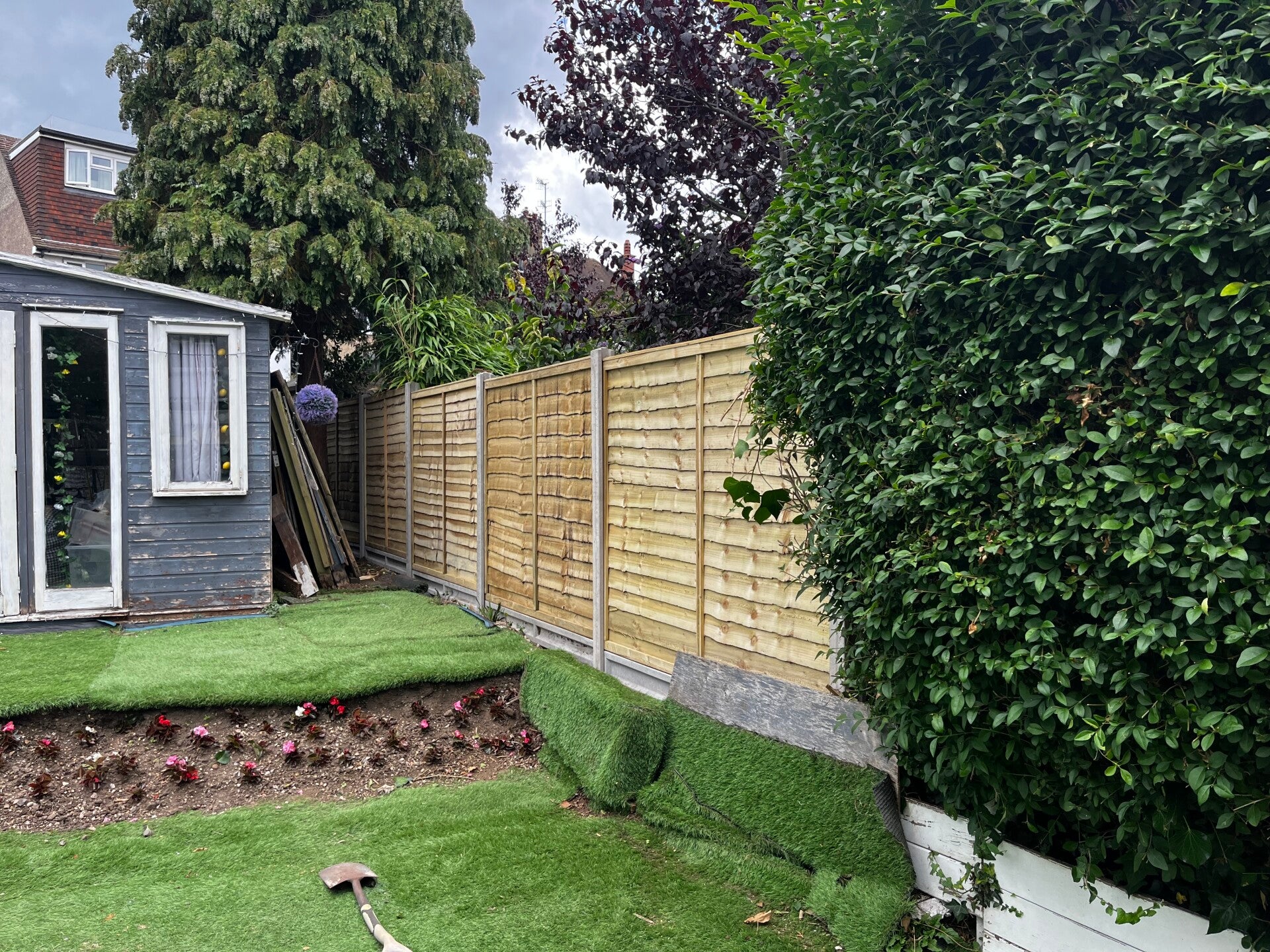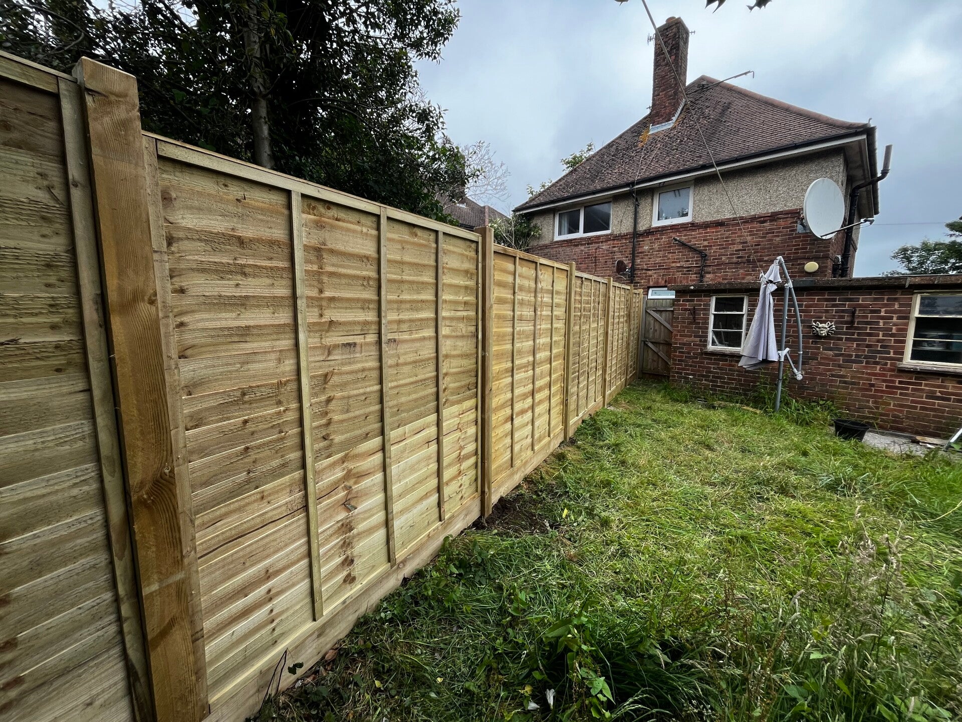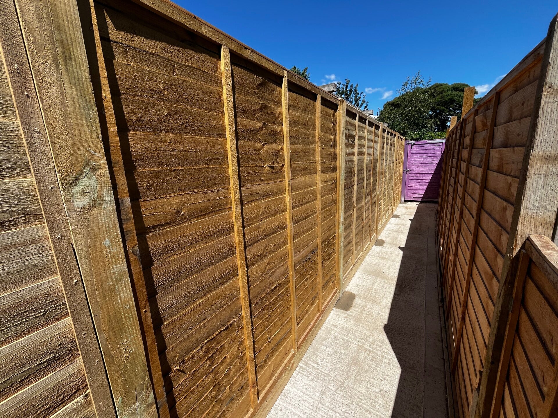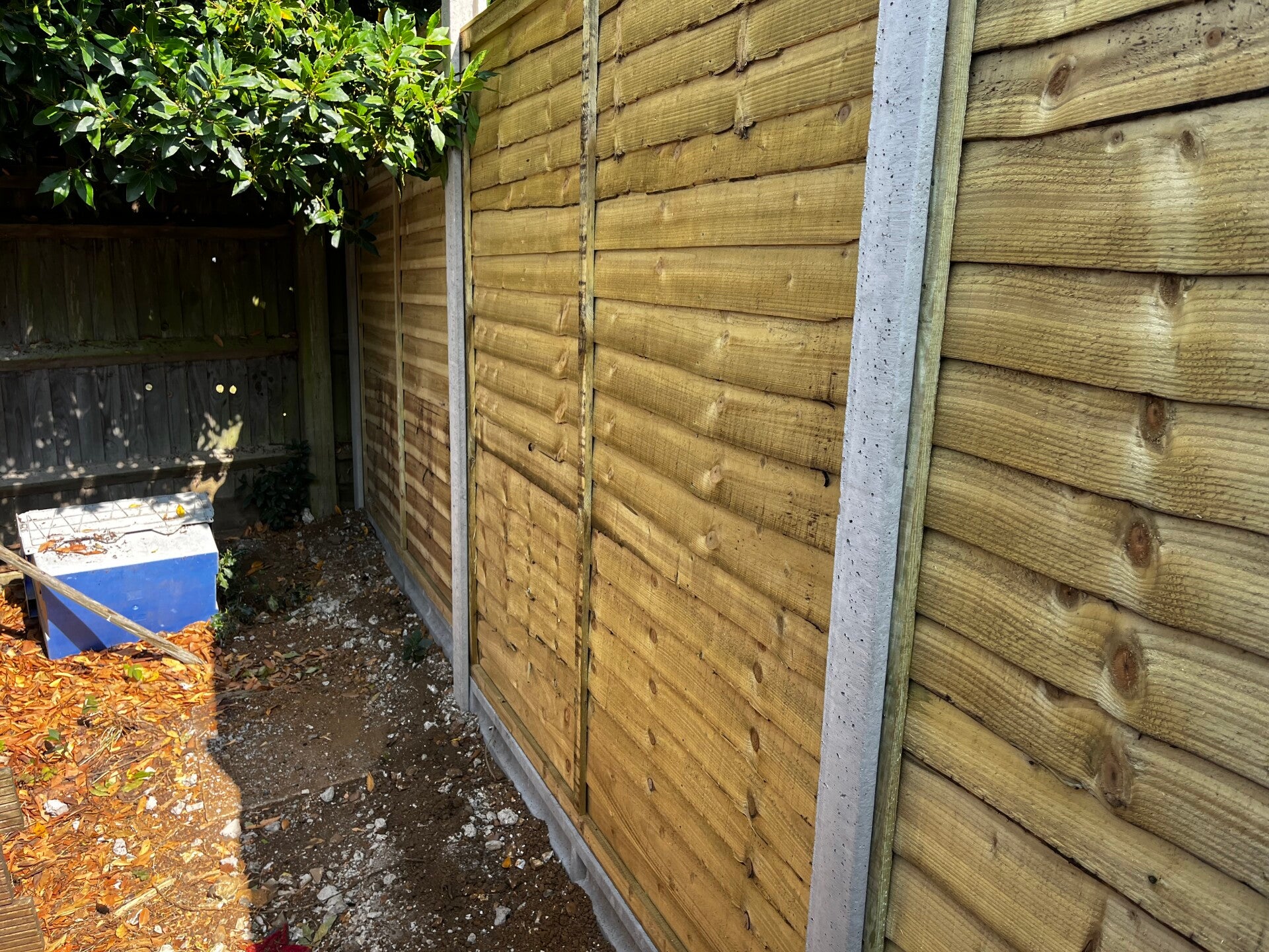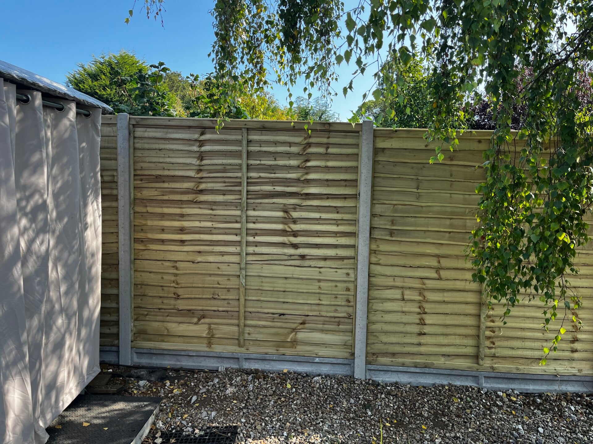 A waney edge panel (also known as lap panel or overlap panel) is a traditional and cost-effective style of wooden fencing made by overlapping horizontal timber boards. The name “waney edge” refers to the natural, uneven edge of the boards, often retaining some of the wood’s original shape, giving a rustic look.